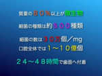お口の中に住んでいる雑菌(細菌)の数は奇麗に磨いていても、1〜10億個の細菌がいると言われています。また細菌の種類は約500種類いるとも言われております。特に上の写真のようにプラーク(歯垢)の中に多く細菌が住んでいます。この中には虫歯の原因になっている細菌もいたり、歯周病の原因になっている細菌も含まれています。ですから、歯ブラシをあまりしていないとこれらの細菌の数がどんどん増えていき虫歯や歯周病だけではなく、口内炎などの粘膜疾患や特にお年寄りの方では誤嚥性肺炎(老人性肺炎、嚥下性肺炎)などを起こすことがあります。また細菌の研究では糖尿病、心疾患などにもお口の細菌が影響しているとの報告もあり、やはりお口のお掃除は虫歯の予防だけではなく、お体の健康にも重要なことであると言えます。